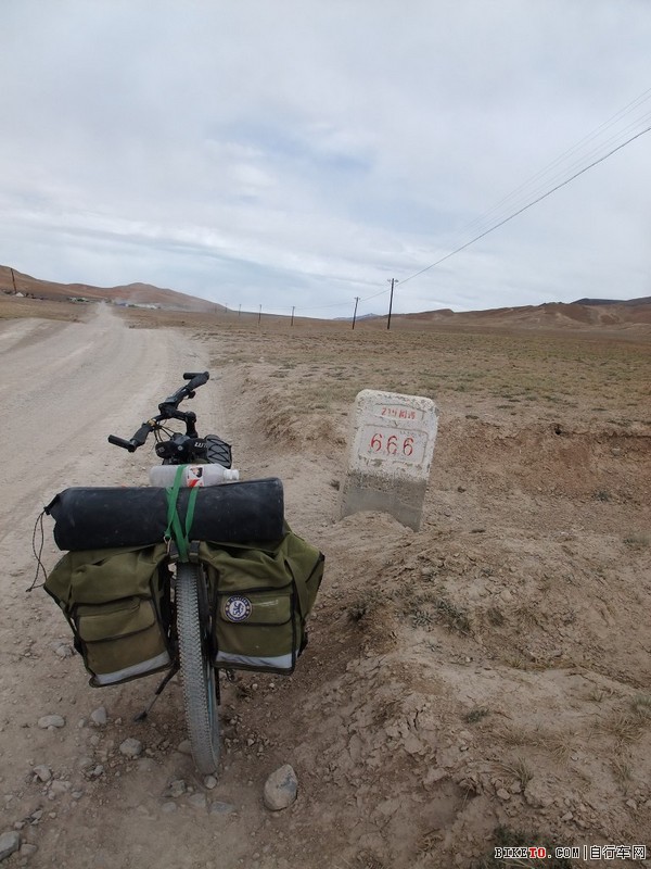 上烂路不久就变天,冷风中夹着雪花,开始新一轮拉肚子,双腿发软,蹲下去后再站起来都很费力。只能骑一段停下来,而休息如果下车再上车的话,也要消耗体力,所以专门找高出路边的沙堆或石头,用脚踏在上面,这样可以省力。