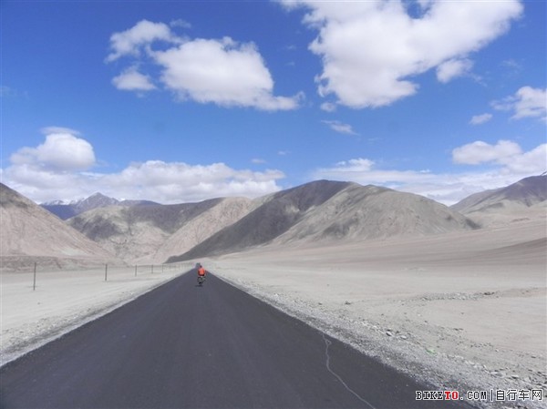 缓下坡,轻松就可加速至30多码,然后静止不动,耳边只有车轮清脆的滚动和风声,阳光温温的照在身上,已经不知道速度是多少,笔直的柏油路在宽阔的峡谷无限向下延伸,两边是沉默的山。雪顶和云层重叠在一起,让人辨识不清,眯着眼有点发呆,伸出右手,让风从掌中滑过,来到这世界的尽头,也许什么都不能抓住,却心满意足。