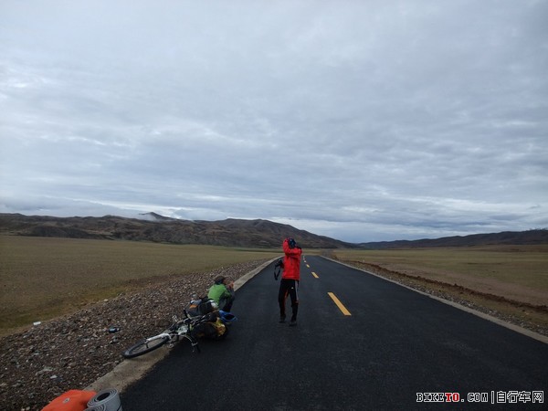 吃完后跟老曹成稳小贺告别,他们要在此等车去古格,而我们拐过几个弯就找了个背风向阳之处消化消化肚子,顺便睡个午觉。醒来后开始爬坡,天气变坏,乌云聚集,逆风也来凑热闹,由于吃饱了,再次一个人骑在前面,快到垭口的时候停下来等后面的队友。