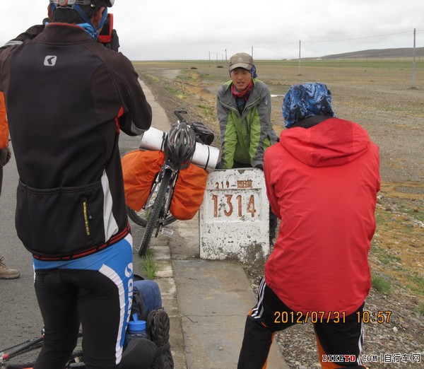 今日路程非常轻松,大家睡到自然醒已是9点多,磨蹭到10点多才出发,天气阴冷,反正路程不长,骑一会就休息一会。不久就到了K1314路碑,必然各自搞怪一番。