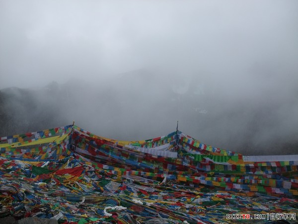 11点整登上卓玛拉垭口,这里海拔5700米,大雾弥漫,下着雨夹雪,如海的经幡和不计其数被丢弃的衣物。藏族信奉把旧衣服丢在神山就可以丢弃霉运,心里想着自己那两只臭袜子丢在日土的标间垃圾桶未免可惜,右脚旧伤再次发作,刚才上山没问题,下山需要脚踝发力,而脚上的是低帮的徒步鞋,保护不了脚踝,不免万分怀念放在家里的ASOLO高帮重装鞋。