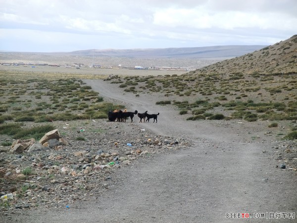结果刚等我从山上往下动,那兔子就飞快的蹿过路面消失不见了,小何很懊恼,说要是他爸和老王在一起肯定能抓住它。下山之后,看见路中躺着一头野羊的尸体,不是藏羚羊,血还在淌,估计车祸刚发生不久,这一路上看到过被撞的有骆驼,野狗,野羊,以及很多只被压成饼状的兔子。继续向前,不久超过了大哥,远远看见一个村庄,路边就有一个茶馆,停下泡了桶方便面,等后面的大哥父子。