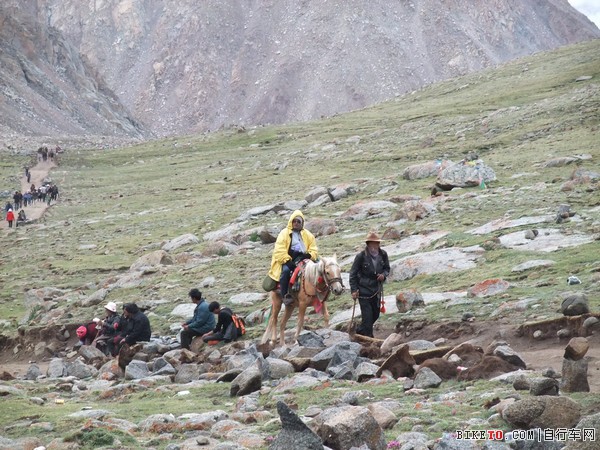 骑马转山的印度教徒,即使这样,据说每年也有几十印度籍朝拜者永眠在这圣山之上。