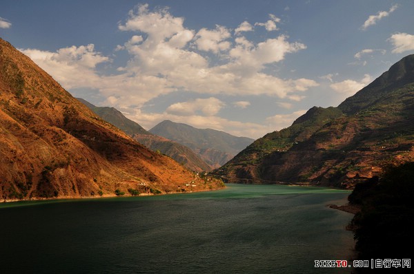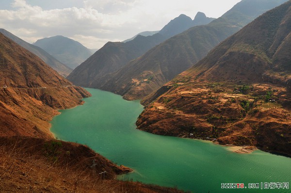早晨六点起床,收拾行李后七点半出发,经民主路——长平路前往拉市海方向。前6KM平路,4.5公里上坡到达坡顶,经拉市海一路起伏至25公里开始缓下5公里然后9公里连续下坡到达岔路口,右转向香格里拉方向,有2公里路段在修路。到达过江大桥处(G214新、老路岔口),因看到了景区入口的牌子就没有过桥,直接向里面骑去,一路上坡居多基本没车,走了一会儿才发现有问题,看金沙江对面的路基本上是平路,忙打电话核实,确认我走的是G214老路,应该走新路才对!还好前面虎跳峡丽江一侧景区门口还有桥能回到新路上去,虽然爬坡累点但一路上基本没车倒也清静。到达虎跳峡丽江一侧景区大门过桥回到G214新路,一点半到达虎跳峡香格里拉一侧景区大门,和景区售票员沟通的一下以半价购得门票!沿金沙江9公里起伏路到达上虎跳,停车下到江边拍照。稍事休息后继续沿路而上11公里到达中虎跳,入住TINA'S青旅,玉龙雪山和哈巴雪山将中虎跳夹在中间,躺在床上就能看到两侧的雪山。上虎跳至中虎跳一路风光很漂亮,左侧山坡不时有瀑布流下,随着海拔的升高,峡谷也显得越来越有气势!