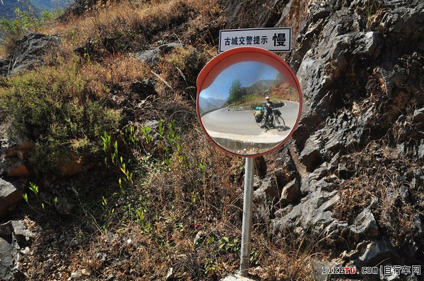 8点半出发,沿金沙江下行3公里而后开始爬丽宁十八弯20公里到达垭口。丽宁十八弯路况很好且一路可以看到碧绿的金沙江,17公里时有一观景台《千里走单骑》的拍摄地,个人感觉在它的下方拍摄视角更好。过垭口后有近9公里路是在高山平台上行进,期间还有一座水泥厂,来往的大货车很多,逆风加上汽车过后扬起的尘土,脏也很累人! 下坡后有一段在修路,需绕道行驶。15点到达古城入住紫藤花园客栈。稍事休息后洗澡、洗衣,然后骑车上街到美利达车行买了个小气筒,没有它骑在路上不踏实啊! 晚饭吃的东北饺子,想着晚上要去扫街酒也没敢喝。