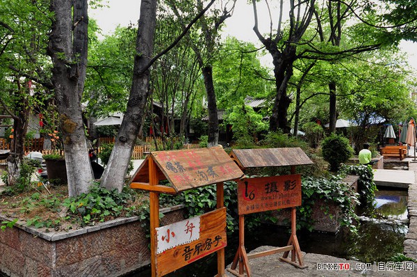 匆匆转了一圈转弯去了拉市海,在路人的指引下抄近走了一段小路上到G214,翻过一个坡就能看到拉市海漂流、马场的牌子,向前走了一段路右转进去到了大门口,看门的要30元门票,算了,不进了! 正要转身回去,从里面出来一位看我是骑车来的就让我顺着围墙绕到里面去。 也许是阴天的缘故,也许是我从泸沽湖走来,来到湖边感觉很一般,只有一些游客在马夫的牵引下骑着马儿在湖边溜达,很搞笑!