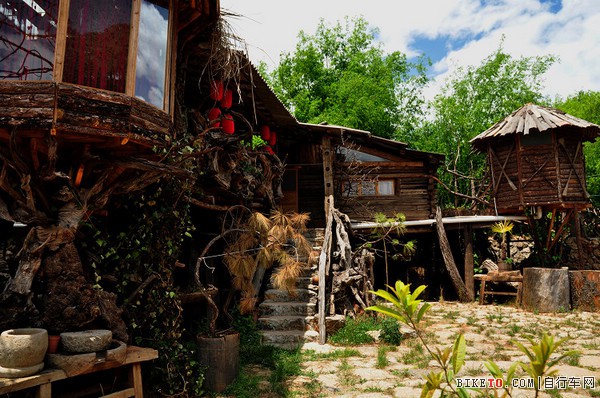 回去的时候走的另外一个出口,看到一家驿馆“山间铃响马帮来”,里面建有树屋,老板收了很多古旧的物品摆放在其间,很有特点,征得老板同意进去参观了一圈,有点感觉!