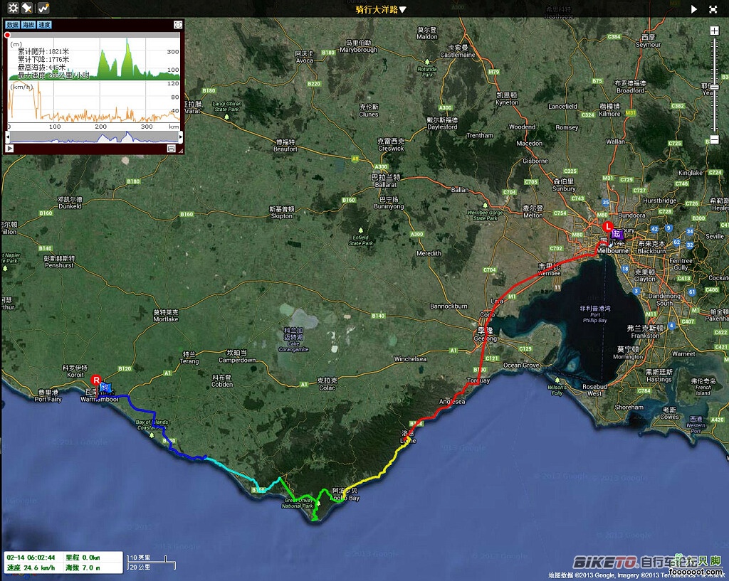 倒是在澳洲的本地论坛BNA上,热心的澳洲骑友们提供了许多很有价值的信息。他们建议我乘坐0719列车(而非0637)从墨尔本前往吉朗;有骑友建议我选择逆骑(从瓦南布尔骑回吉朗),而另外一位骑友在查询了2月份季风的方向以后,建议我仍然从吉朗出发,甚至有骑友提醒:若从瓦南布尔逆骑,则每一次想要为景色拍照都要跨越大洋路;还有人强调,一定要穿上反光背心(虽然我最后舍不得钱,还是没有买)……他们的鼓励大大增强了我的信心。总之,我去定了。