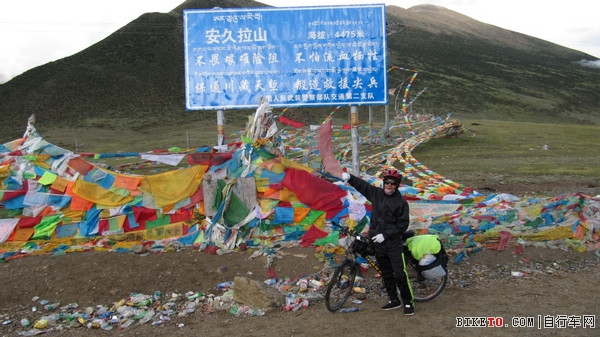 过了这块碑就是噩梦开始了,先是老高爆胎,换好内胎后没走几步我就爆胎了,刚补好胎一会就又泄气了,此时已经是下午3点过了,我们还没有到达安久拉山顶,谁知道刚才还是晴空万里立马变的乌云密布,然后就刮起了史无前例的大风,那是我这辈子经历过最大的风……