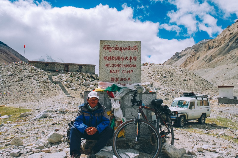修好车已是下午3点,离尼泊尔口岸还远得很,无奈下的他只好搭乘汽车,不过汽车只能送自己一小段路。天渐渐暗下来,满身的汗水泥水的他走在路上,仅仅行进了5公里,意外再次降临,他一脚踩入泥坑里,摔了一跤,车头又断了。说到这里,罗卜忍不住笑起来:“感觉一生的霉运都在那一天用完了。”