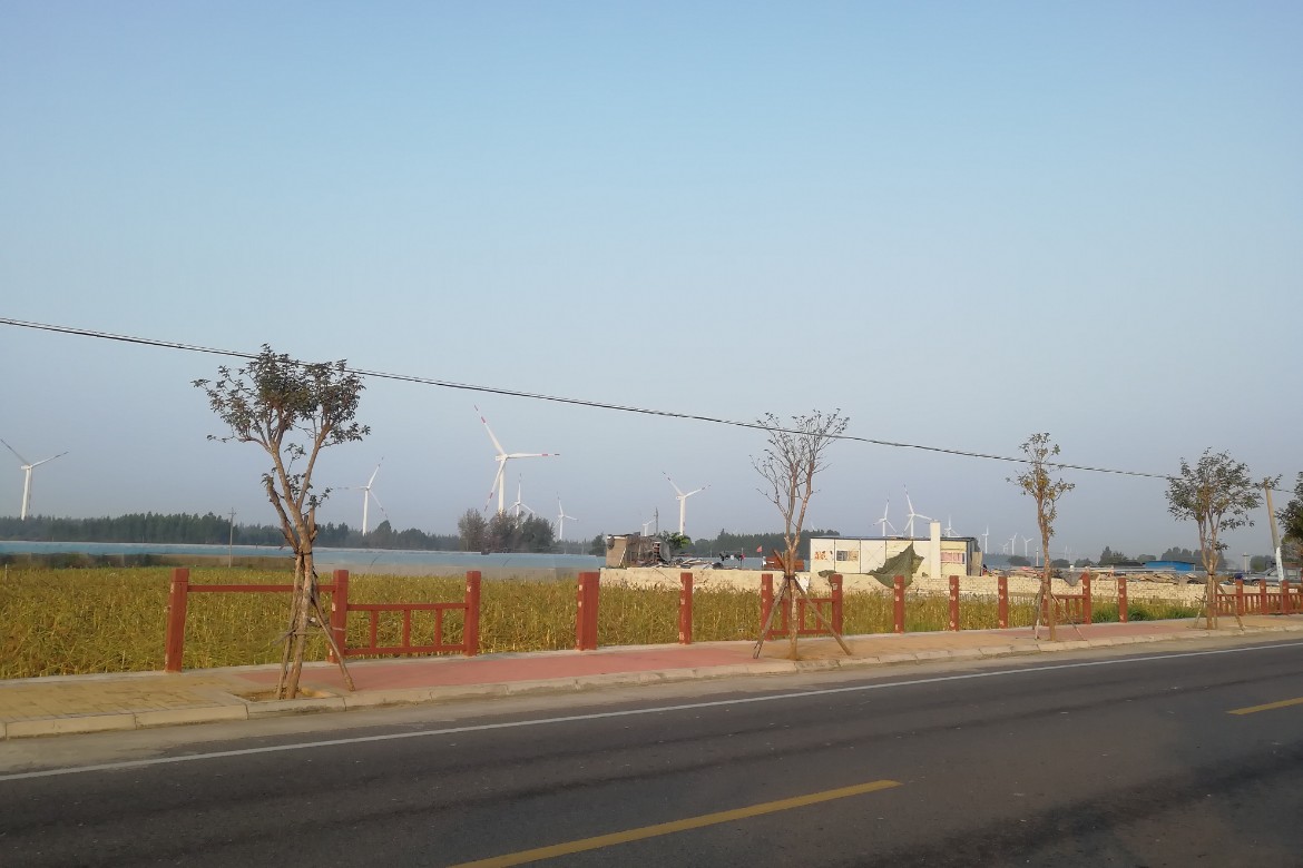 远处高大整齐的风力发电站不知疲倦地旋转着,提供着源源不断的电力。