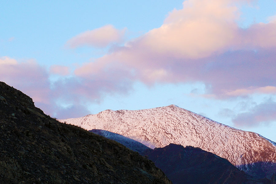 愿望不断地在脑子里转圈,骑行变成机械的动作。大概离垭口还有三四公里远的时候,我们走出峡谷。