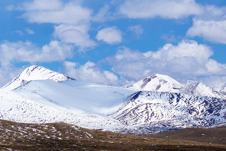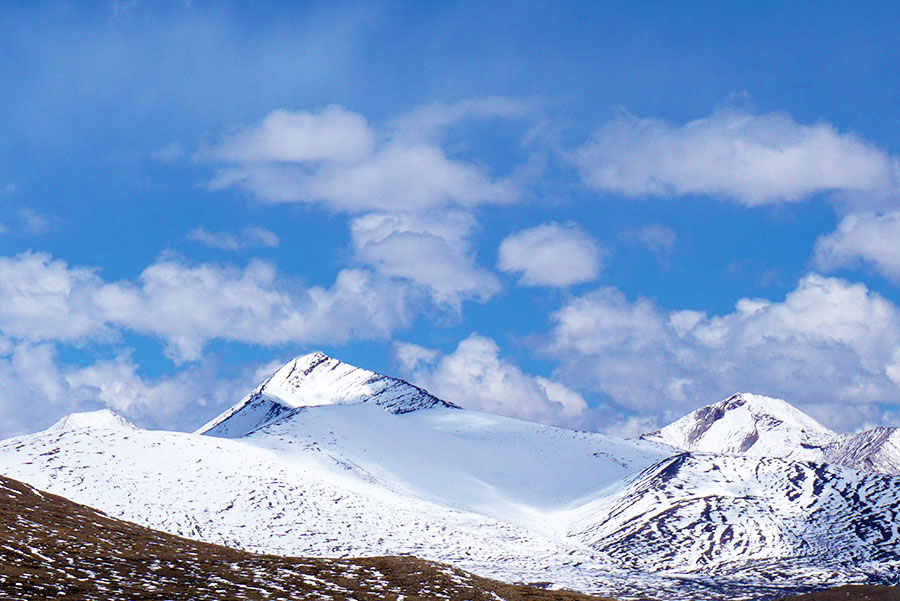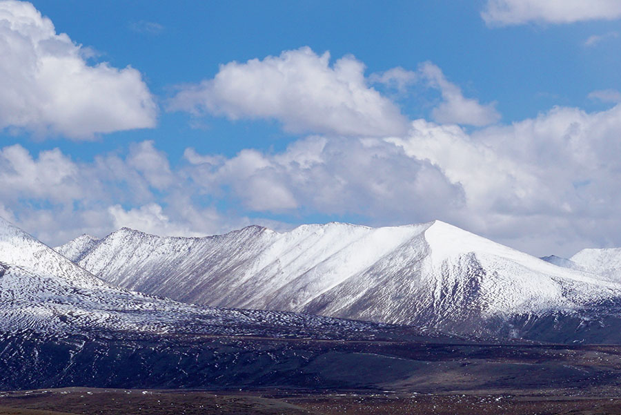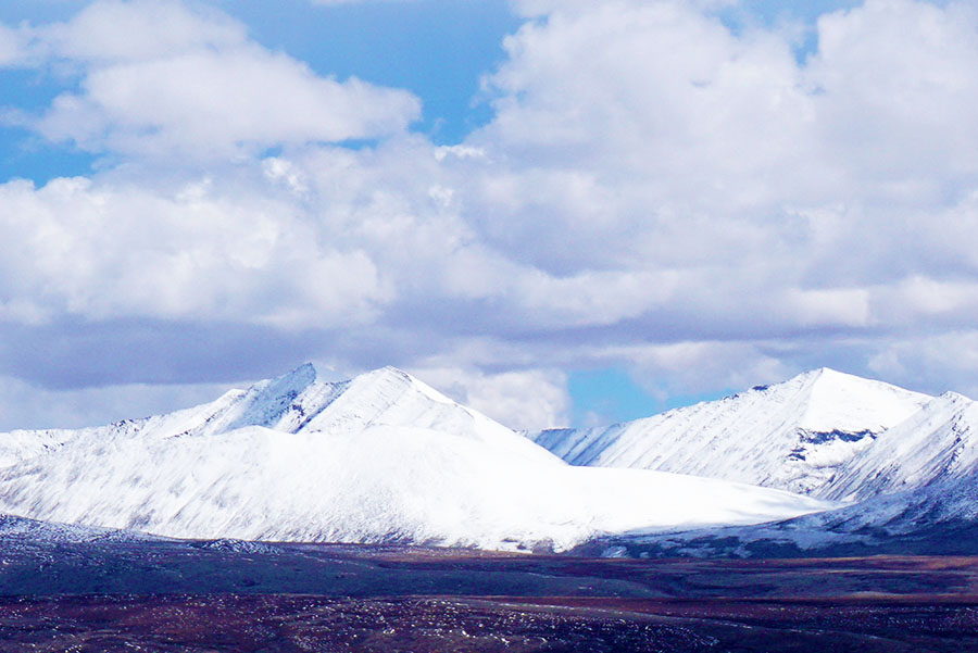 荒原周边露一个个的雪峰,洁白无暇。