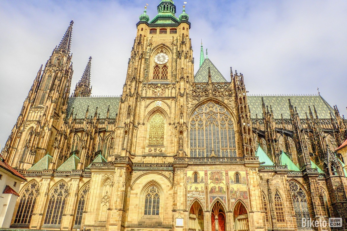 城堡里的圣维特大教堂是捷克最大的教堂,不过但凡是大教堂,总有一些地方处于维修状态。这个教堂的确非常雄伟,进入参观的人在外面排了很长的队伍,我选择在外面围观,就不进去凑热闹了。