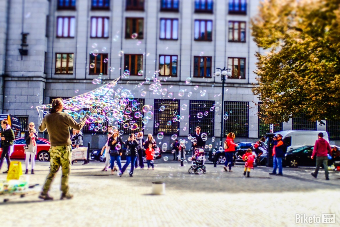 在布拉格总是很容易遇见吹泡泡的人,五彩绚丽的泡泡在阳光的照耀下显得更加梦幻,吸引不少游客驻足围观,也最受小朋友的欢迎。