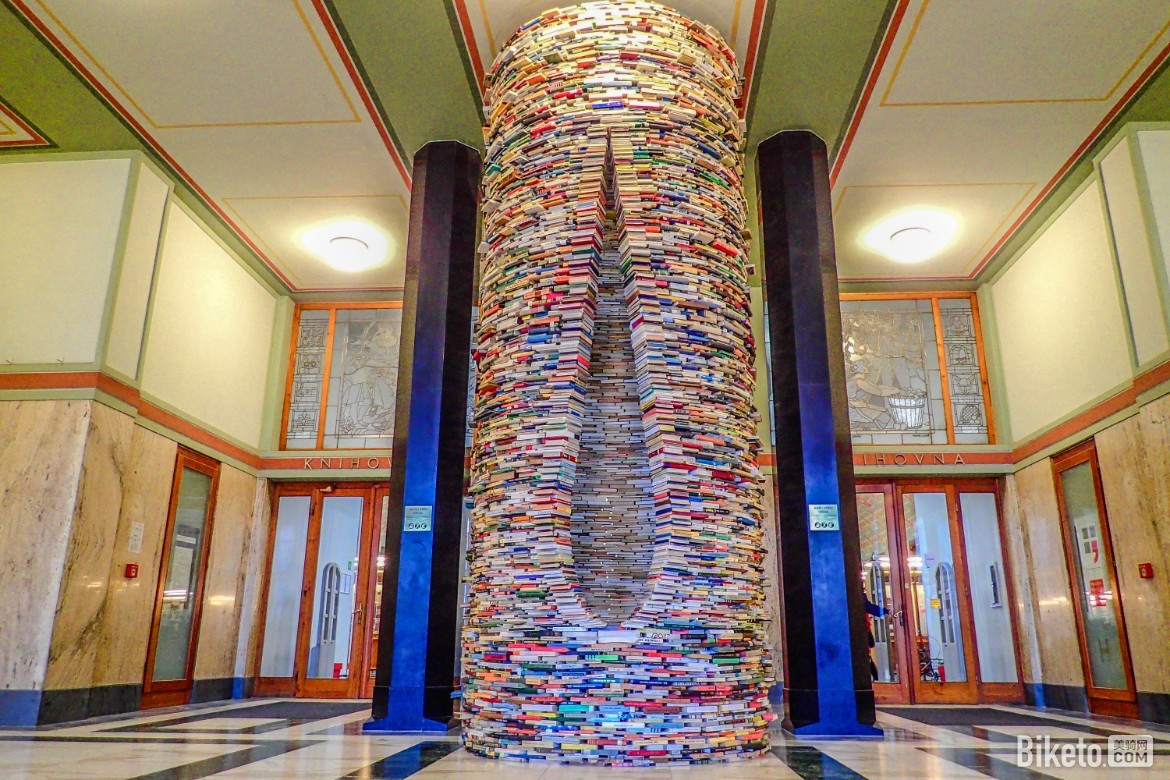 在老城里,有一座很有意思的景点,它是一个由书堆砌起来的柱子,位于布拉格市立图书馆的大厅里。