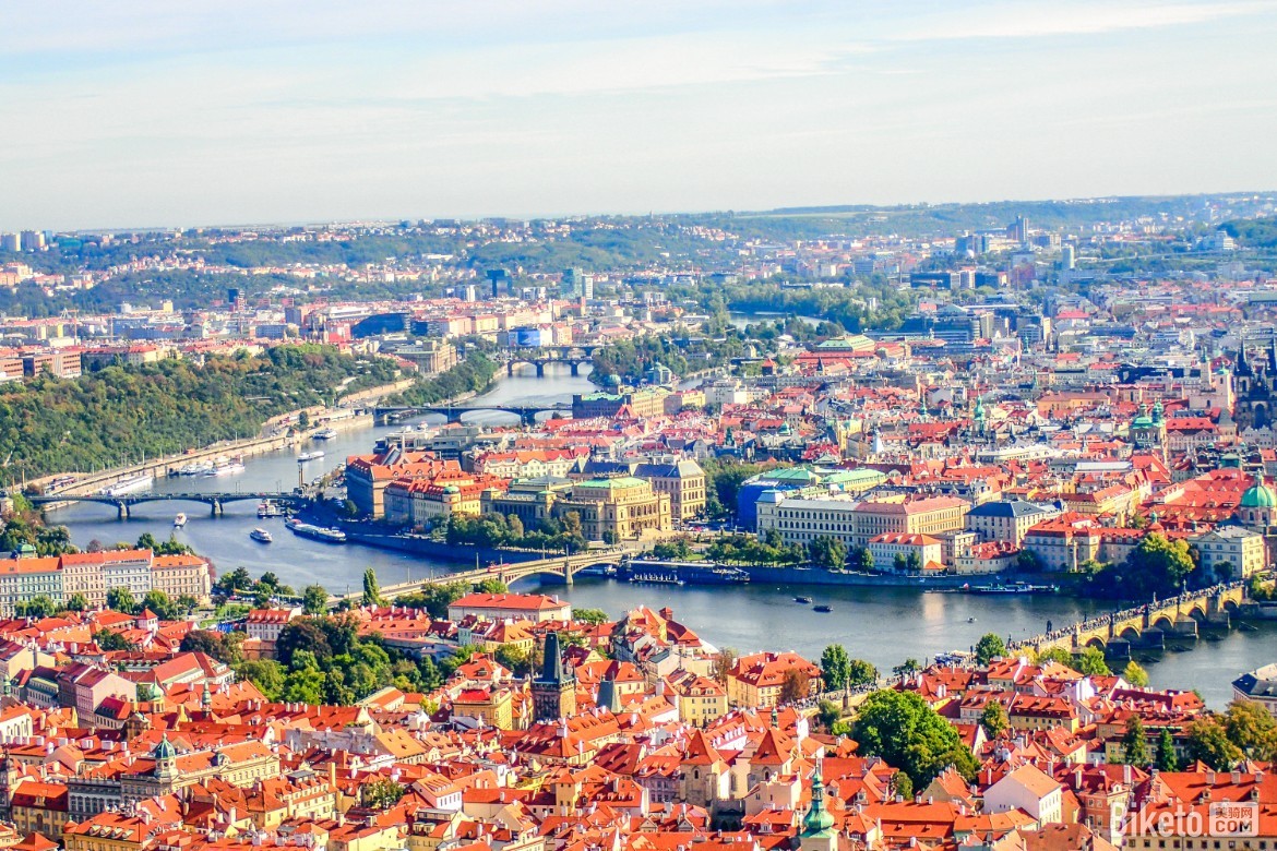 站在佩特任瞭望塔上将整个城市一览无遗,两岸的白墙橙瓦错落有致,远处的查理大桥和城堡也清晰可见,你会觉得这应该就是童话王国的模样吧。