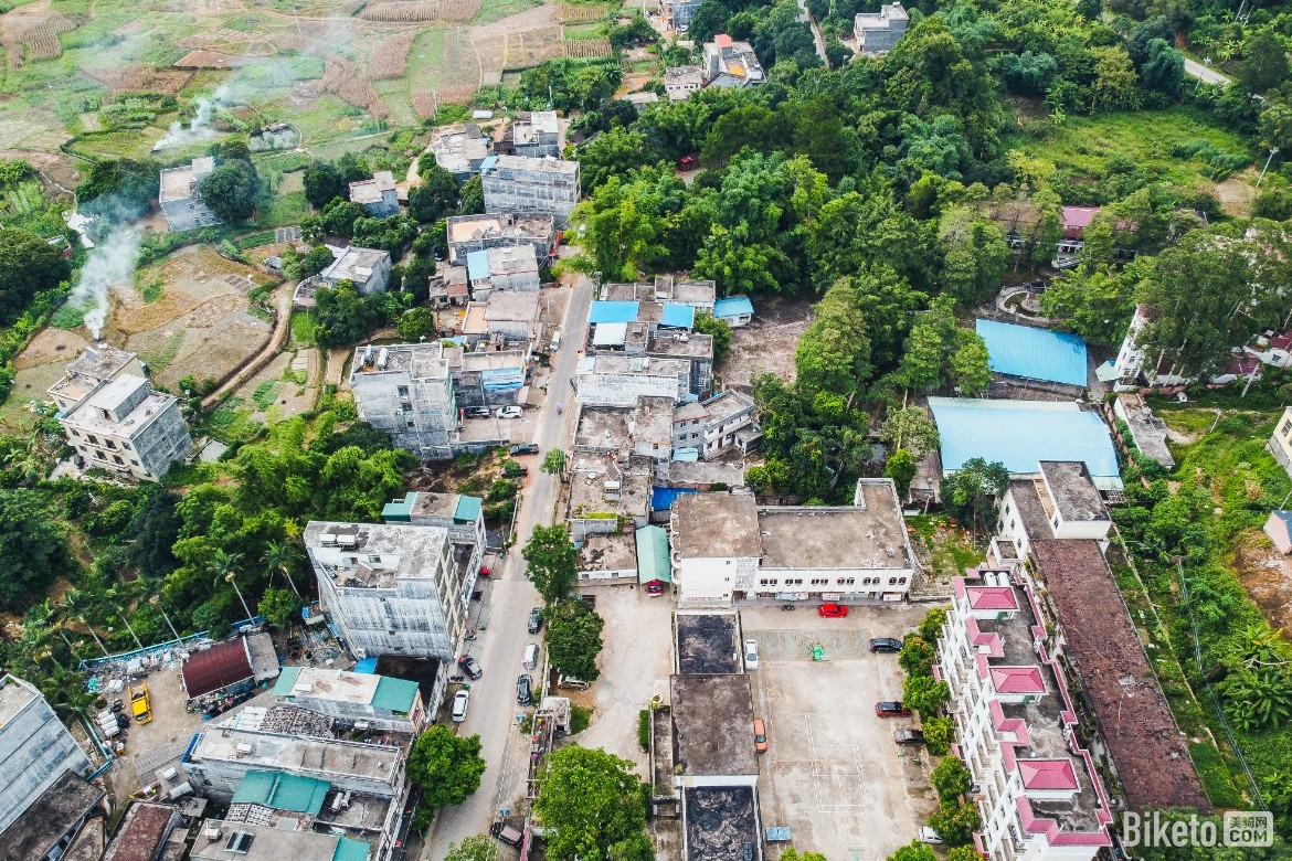 航拍峒中,可以看出镇子结构非常简单,就是一条大街作为主干道,辐射周边,峒中口岸距离镇上还有一段路,所以并没有安排前往打卡。