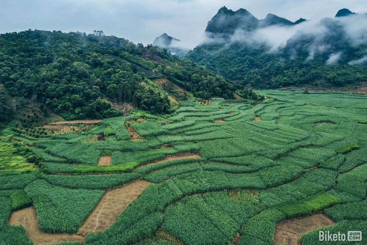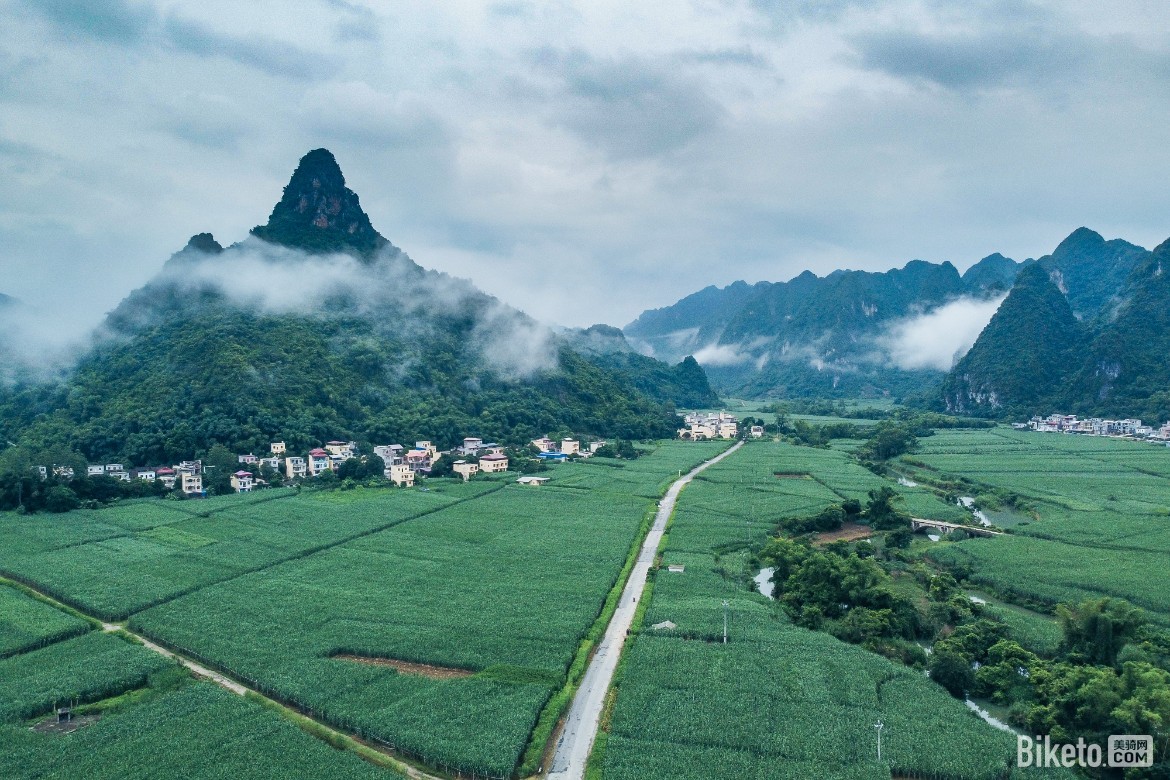今天的开局依旧是阴天,跟前几天比其气温更加凉爽,可以看见远处的山上飘着一层云雾,这就是最初我预想中在农村骑行的样子。