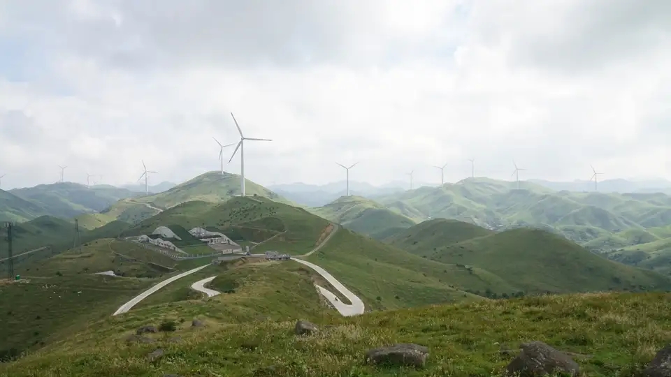 放眼望去,山风吹拂下,掀起翻滚草浪,远处的山头露出本有的模样,准备再回南山风电观景台看看,弥补一下上午雾气笼罩带来的遗憾。