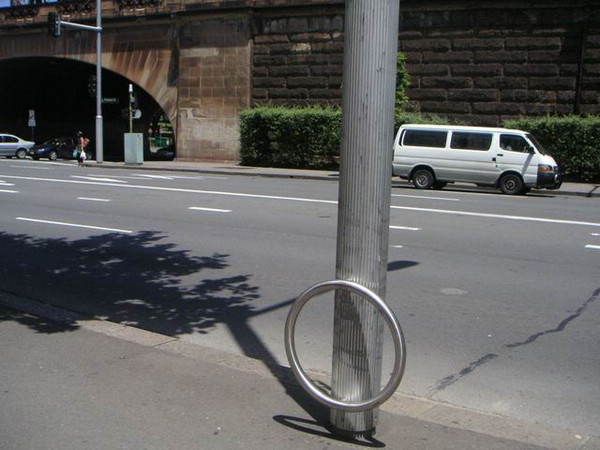 街头专门方便停靠锁车的金属环,我们经常把车一锁就是离开大半天也不担心,满街的trek,梅花……都这样锁着,就是要偷也轮不到我们。真希望国内也有一天不再喊“车不离人,人不离车”的口号。