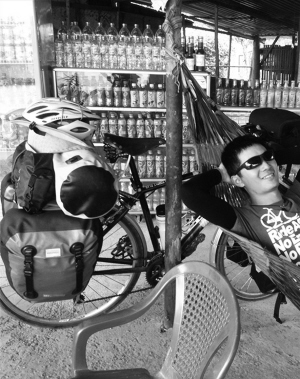 推进一个庙求宿,结果被老尼姑赶出来了(这是作为无神论者的代价吗)。费尽周折,终于一家露天咖啡店同意我在两棵树中间吊床上过一夜。时来运转,店家又请吃了晚饭。