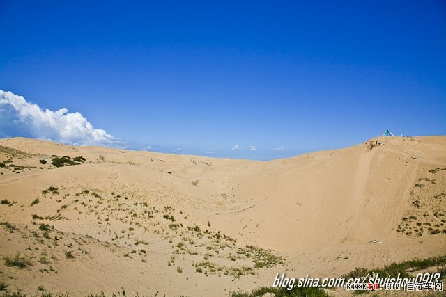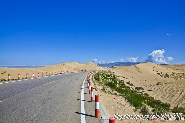 环湖东路再往前走,便会进入那一片沙漠之中。刚才还在欣赏草原的美景,现在竟身处于茫茫的沙漠之中,这样的反差,也许也正是环湖的魅力之一吧。