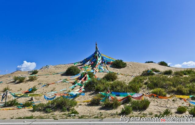 沙丘上的经幡,独有一番风味。