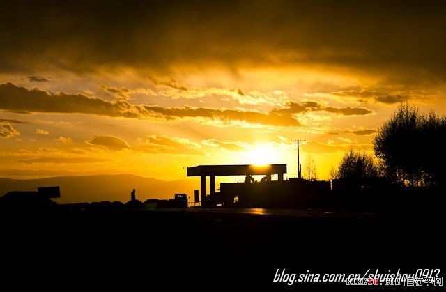吃完饭,偶得落日,赶紧拍之。只可惜背景是一个加油站,有点煞风景。