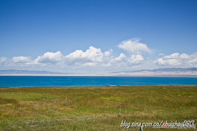 广阔无垠的青海湖啊。我试了一下,湖水真的很凉,实在不敢下水。
