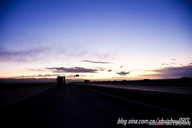 109国道上的晚霞。此时奔波于途中的那些大货车,显得格外苍凉和寂寞。