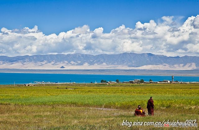 这张照片我也非常喜欢。骑车途中,我突然发现几位年轻的喇嘛正在草地上嬉戏,而远处的青海湖、高山白云,则显得和他们一样,青春、活泼,透着一整股生气。这样的景色,简直让人不想走了。