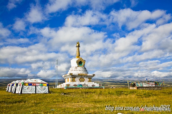 又遇见了一座白塔。它可谓是我整个环湖过程中遇见的最美丽的一座白塔,没有之一。