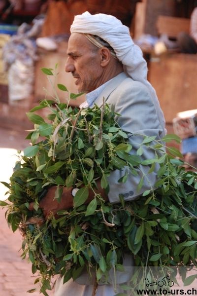 也门人可以说是“全民吸毒”,也门的男子,上至国家和政府高官,下至平民百姓甚至军人,大多数人都有咀嚼卡特(QAT)的习惯。卡特是与鸦片可卡因归为一类麻醉品,沙特和埃及都将卡特列为严禁入关的麻醉品,非法食用会受到15年监禁,但在也门确实一种合法的日常社交必备品。每天中午过后大街小巷都是咀嚼卡特的人,也门是一个贫穷的国家,经济很萧条,但销售卡特的商店却永远是人满为患,我们尝试过一两次,但却没什么感觉。
