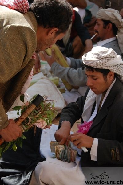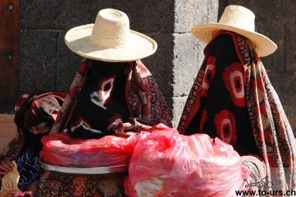 另外有一个不可不提的地方,就是也门的女性和家庭。在阿拉伯国家是允许一夫多妻制的,而且妇女的结婚年龄非常低,我们曾碰到过一个27岁的女性,她可是一个生育了11个小孩的母亲,最大的竟已16岁。。。而这种家庭现象在也门并不罕见,有一次我被邀请到一户人家参观,不大的卧室里满满的挤有十几张单人床,这家人有很多女性,英语都说得很好,但遗憾的是父亲不让他们出去工作。在也门,尽管法律上没有明文规定,但妇女都蒙面,所以女性游客在也门的穿着可是要小心谨慎了,短衣短裤的装扮可是等同于光着身子走路一样,会给自己招惹很多不必要的麻烦,戴上头巾更好。