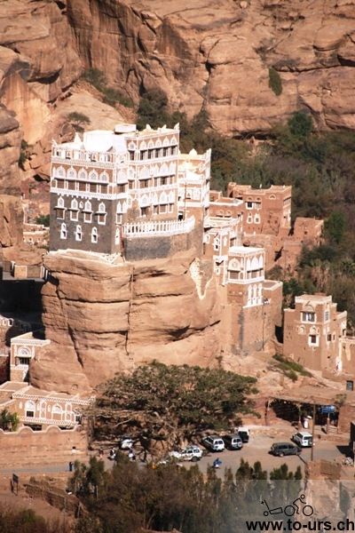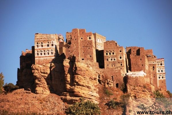 来到也门你会想到一个词“石头记”,因为也门绝大多数的建筑都是建在陡峭的悬崖峭壁上的,而且是高楼林立,站在上面往下看脚都发软。