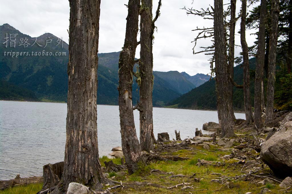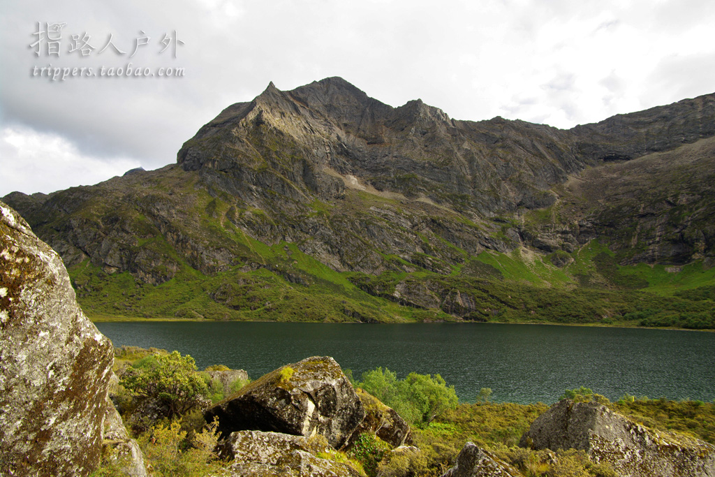 一路不停的走,穿过原始森林,路过逐渐变矮的高山灌木丛,走过巨石嶙峋的乱石滩,终于在下午四点多钟来到了C湖边上。