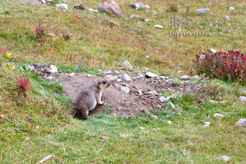 嘿嘿,你这肉滚滚的家伙,我来了!我悄悄走到洞口外面,趴在草地上,手放在洞口,准备等它冒出头来的时候一把抓住它,亲手摸摸它,感受一下它的质感,看看它是不是真的如同我想象的那么柔软,那么肉滚滚的。不过旱獭妈妈很谨慎很小心,刚探出个鼻子,我还没来得及动一下就它就闪电一般缩回去了,一反它在草地上跑的时候笨拙的形态。试了好几次,都没能碰到它的一根毛。