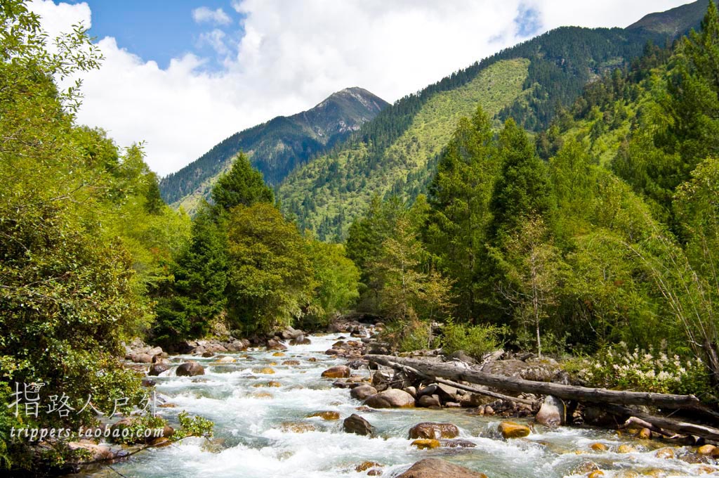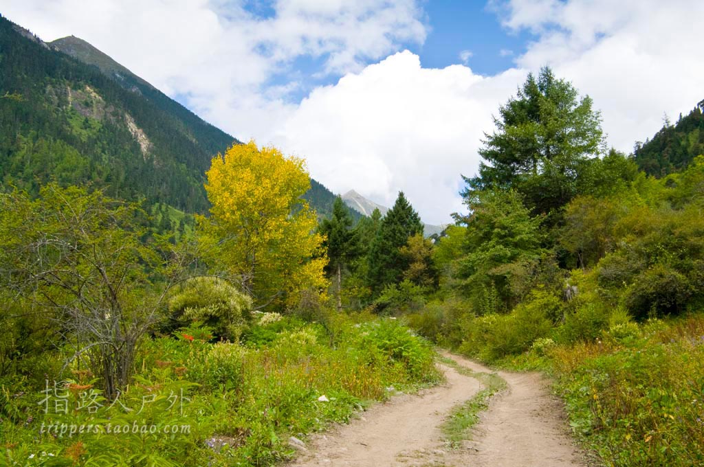 在这里,路的大小就由伐木场所在的位置来决定了的。从进入这个峡谷到这个伐木场,都是有两米多宽的的机耕路,可以通过一个解放牌大卡车——大卡车是运输木料的工具。而伐木场后面的路,都是人和牦牛走的羊肠小道了。