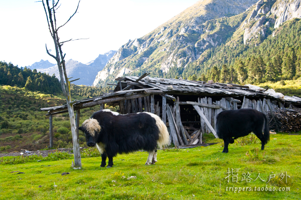 这里有漂亮的风景,有舒适的小木屋,有一群亲切的无聊的牦牛和我做伴,还有干净的水源。更重要的是,豹子或者熊来了也不会顾的上我——外边一群牦牛恭候着呢,公母老幼,想吃什么口味的都有,任意哪一种口味的味道都会比浑身汗臭的我好多了啊(可怜的牦牛,又当伙伴又当替死鬼啊)。