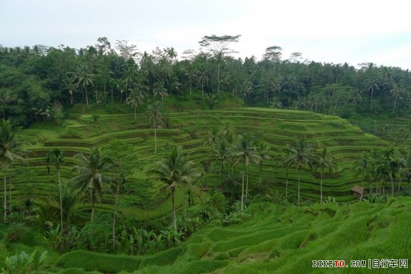 这次在巴厘岛最难忘的并有点奇特的经历就是骑自行车游巴厘岛。我们联系了一家专门组织自行车游巴厘岛的公司,每人的团费是40美元,包括一顿自助早餐和一顿午餐。公司派车把我们送到巴厘岛几乎最北面的那座火山口附近,然后再骑车回来,来回大概要9个小时左右时间,很有意思。由于自己骑车,既可以好好地欣赏路边的美景,还可以细致地到村庄里探访当地的居民,更可以到田野里参加他们的劳作,充分了解他们的生活,还锻炼了身体。
