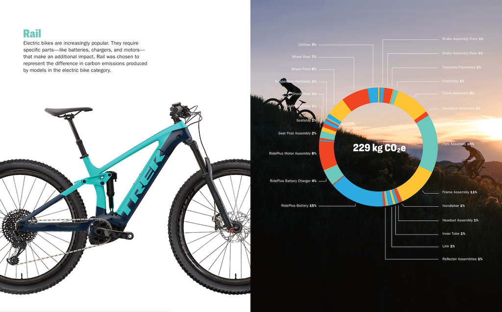 崔克的这份新报告中最有意思的部分当属这项关于其自行车的原材料、制造和运输过程中产生的碳排放的研究。崔克深入研究了其最受欢迎的四款车型(Madone、Marlin、Rail和Fuel EX)在制造过程中的碳排放量,然后按不同的配置进行细分。