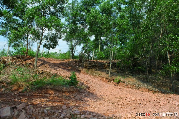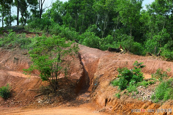 建设中的高级林地赛道(山地、速降共用赛道),坡陡林密、砂石路面、极具挑战性
