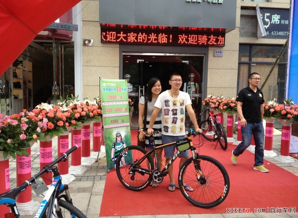 上海自行车队小黄(左)也前来为TTGO富阳店开业助阵