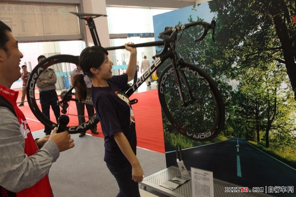 车展上除了全运会冠亚军车,最受欢迎的就是这辆KS930了,全碳纤一体成型车架,CP轮组、套件,加上电子变速,整车仅有6.4kg,让参观人员都十分好奇,分别想要一探究竟。