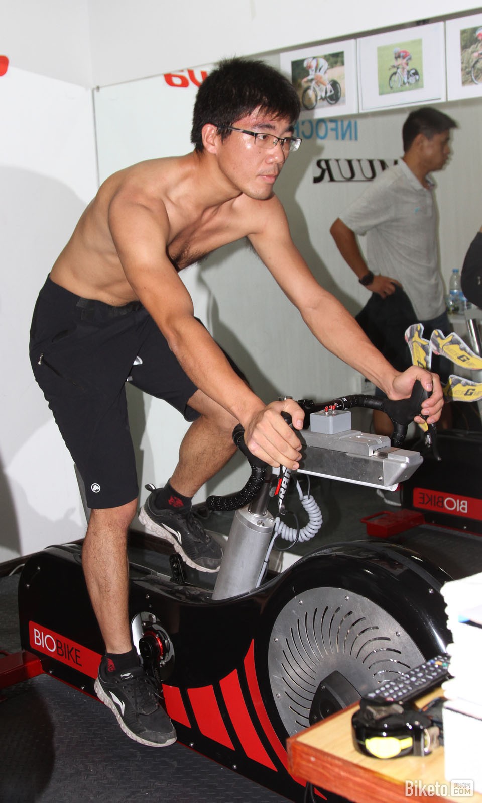 下午大家移师银贝斯岛内展厅,实际体验这台世界上最先进的BIOBIKE功率训练机器,BIOBIKE创始人STEWART先生亲自为大家讲解和操控机台,为每个体验者详细地进行测试,这位70多岁的意大利老人,为了让大家有好的体验,已经来华准备了20多天,功率机的拆装,测试、调试,每个步骤都亲力亲为。在培训的这三天时间里,STEWART先生逐个为三十多位客人做了功率测试和动态FITTING,真是辛苦这位老人了。