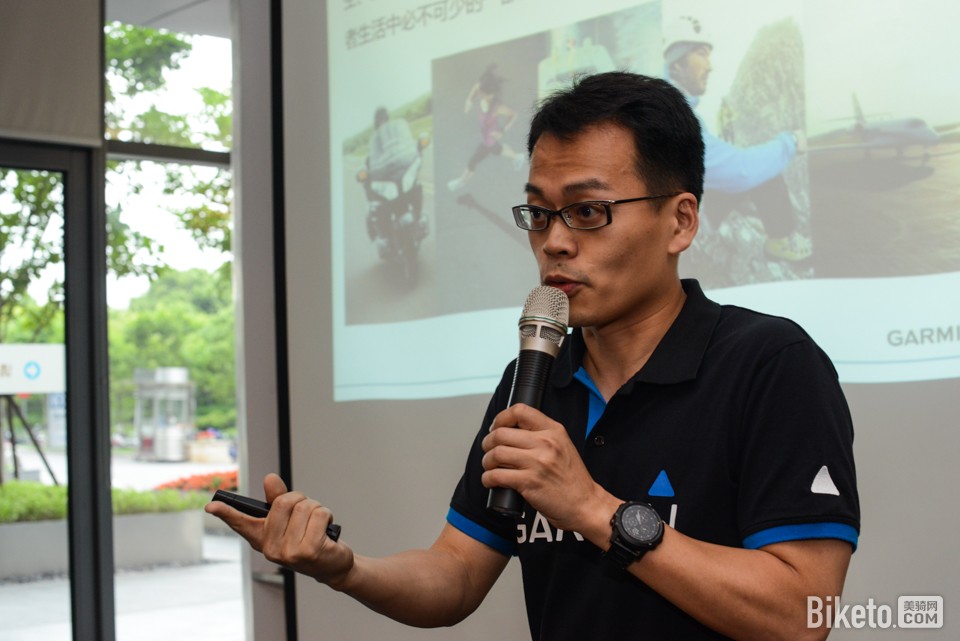 产品经理张国强介绍Garmin产品,其中用于运动和骑行的产品最多。