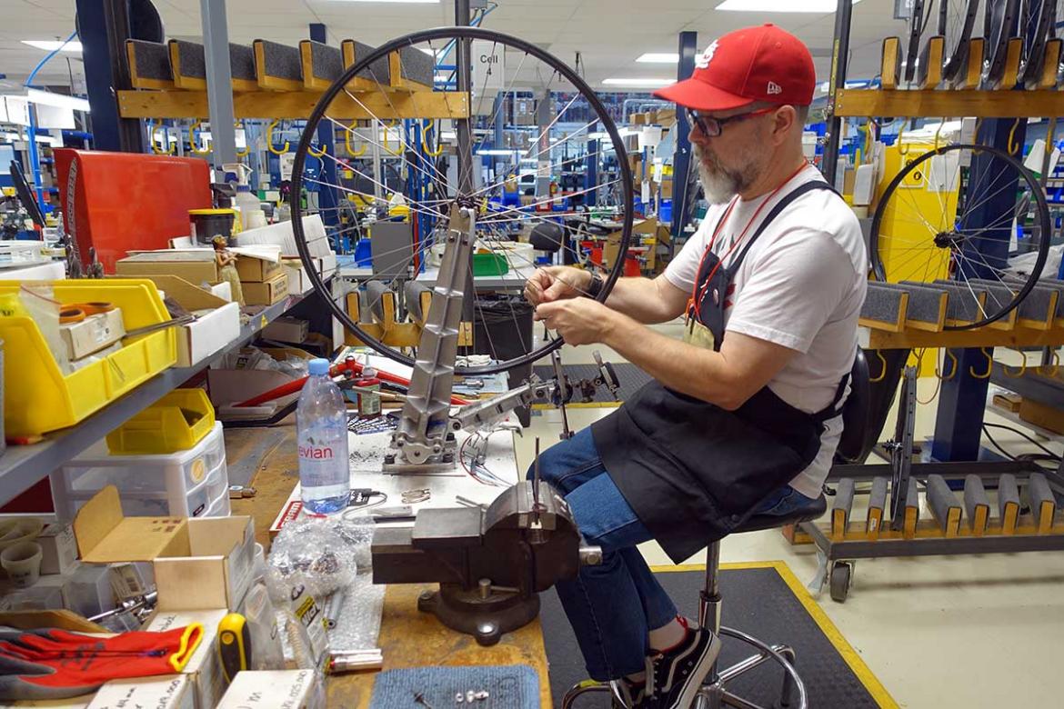 尼克·詹姆斯负责为赞助车手们组装轮组,不过在车手测试之后,他还要将轮组分解,以观察辐条、辐条帽、轮圈等组件的磨损情况,得出相应的改进结论。一旦完成组装以及最后的检查环节,这些轮组便准备装运。