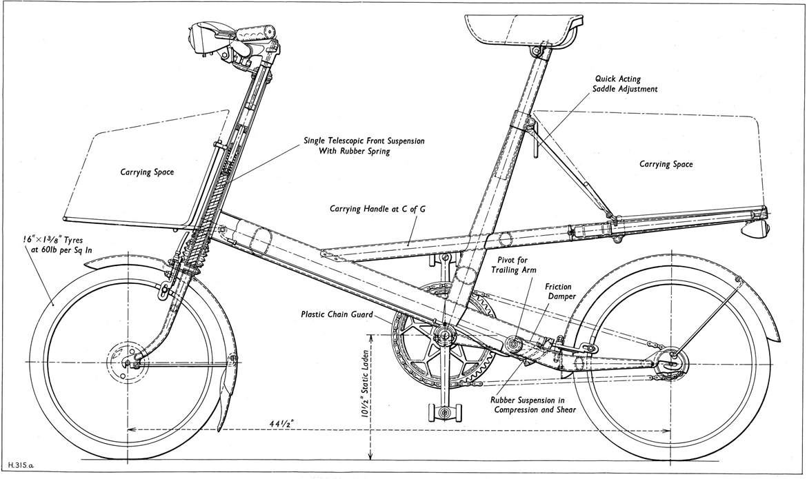 1962年,他提出了现代两轮运输工具版本,其主要特点是实用性和紧凑性(车架不能折叠,但可以拆卸),易用性(悬挂确保完美平稳地行驶),走行性能令人印象深刻。仔细分述以上特点:独特的车架不仅明显减轻了结构重量(仅10公斤),而且使其坚固且高效。小型轮胎能够承受高压,绝不逊色于全尺寸轮胎。所有的工程创新使莫尔顿成为一款真正的赛车自行车:竖直向骑乘姿势自行车世界纪录-82公里/小时-至今尚未被打破。