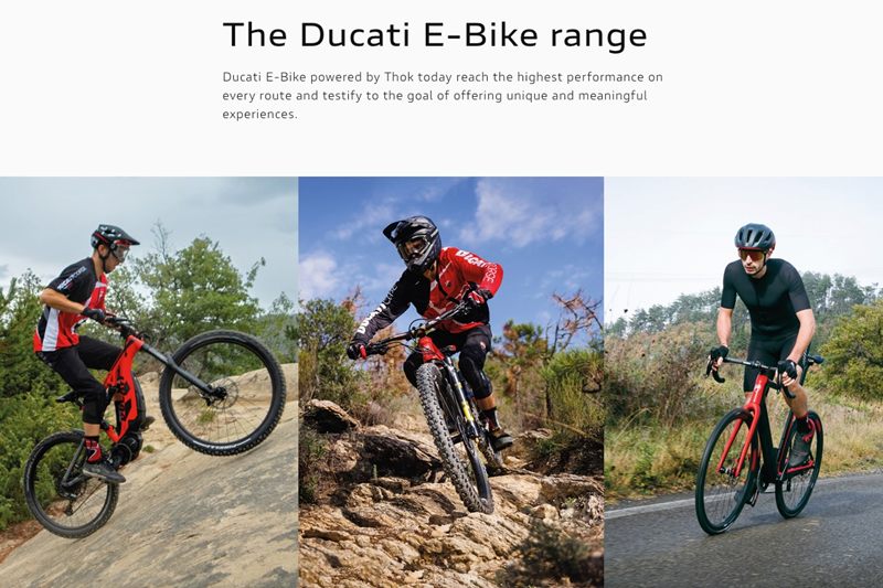 杜卡迪在生产电助力山地车方面已有一定经验,但将继续发展其电助力山地车系列,并与包括多次获得意大利速降赛冠军的洛伦佐·苏迪格在内的运动员合作。其现有车型是与THOK合作开发的。